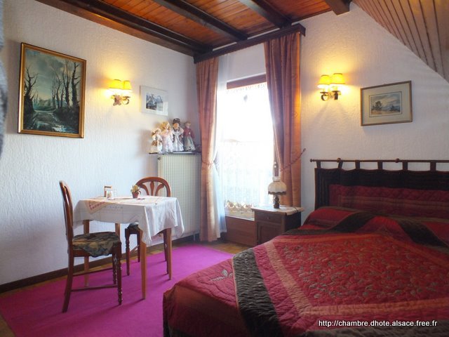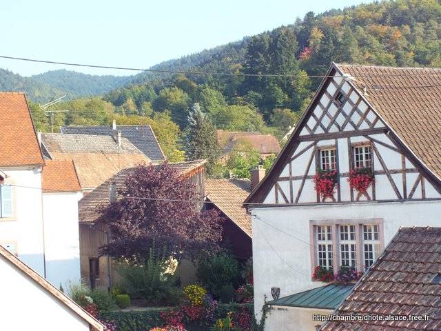 Quatro câmaras de hóspedes numa residência florescida, numa aldeia medieval, parentes da estrada dos vinhos e a montanha, à dois não Colmar e Munster, no meio do Parque regional dos Balões Vosges.Casa florescida em verão e decorada às cores de Natal em inverno.
